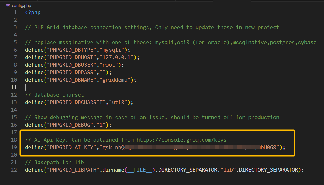 Next, you can enable AI Assistant in the DataGrid by the following setting: